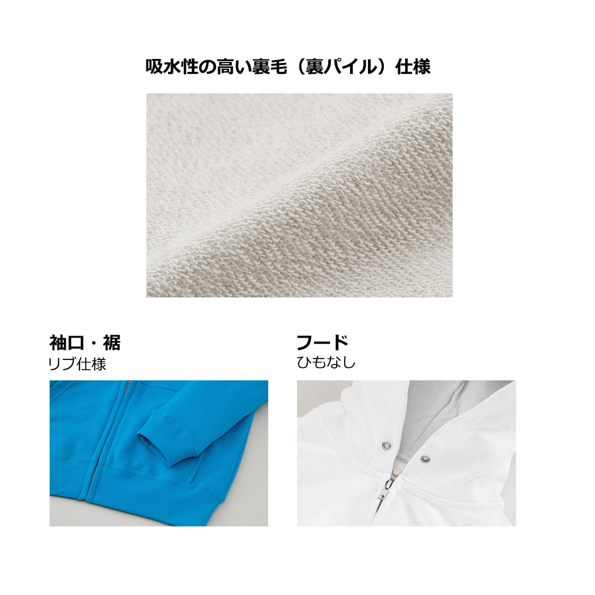 裏毛(裏パイル)仕様で吸水性、保温性があり快適な着心地。