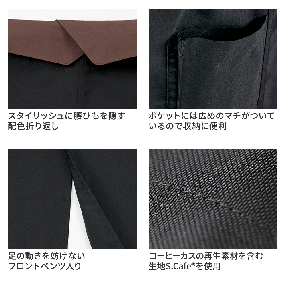 なお、環境にやさしいエプロンでもあり、コーヒーカスの再生素材を含む生地「S.Cafe®」で作られています。