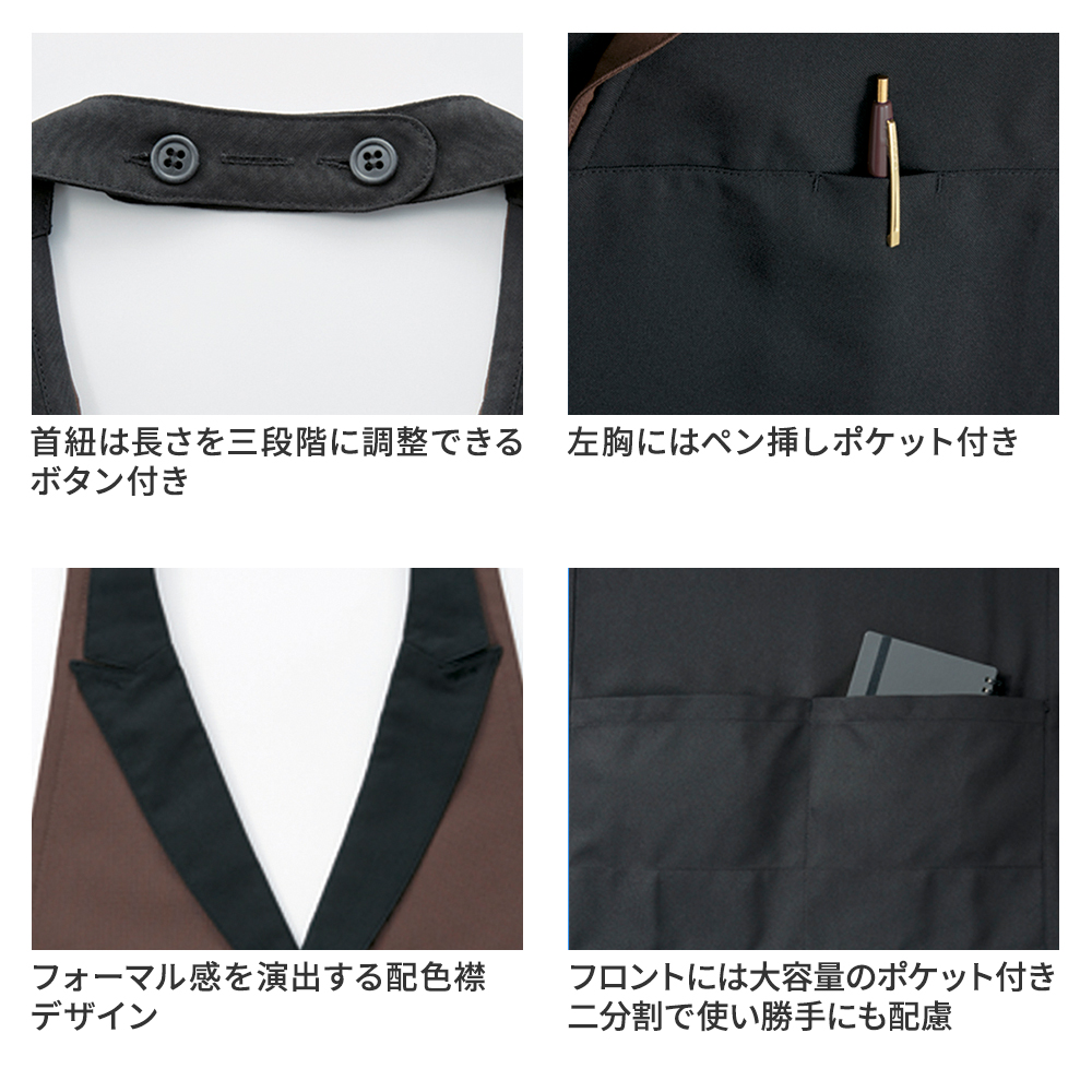このエプロンは耐久性に優れたトロピカル素材を使用し、長時間の作業にも適しています。