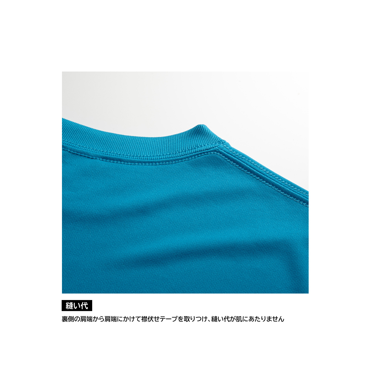 ●機能:柔軟素材、吸水速乾、紫外線遮蔽、UPF50+(紫外線防止指数)、首リブ ダブルステッチ、横割り仕様