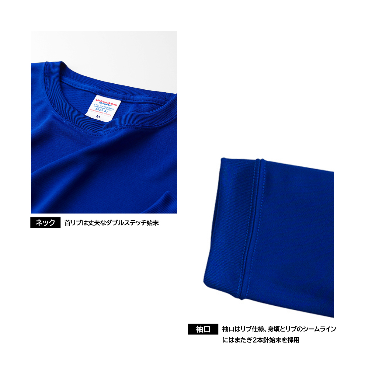 特徴:袖口はリブ仕様、優しい肌ざわり、ドライ・吸水速乾、紫外線遮蔽、ダブルステッチ