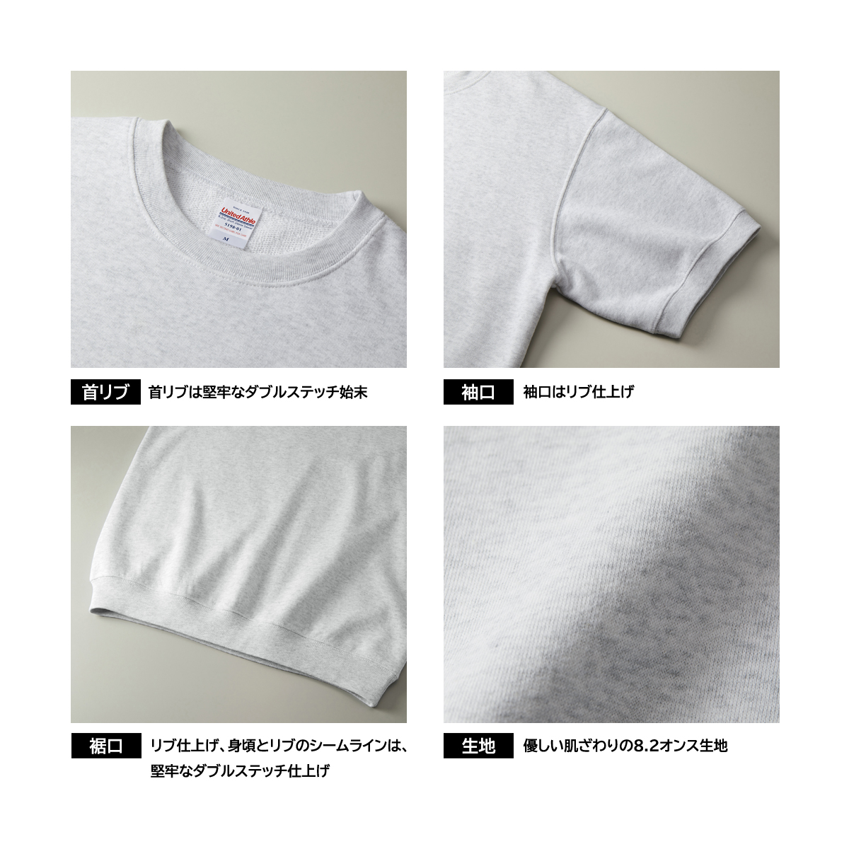 8.2オンス ショートスリーブ スウェット(裏パイル)【5198】
