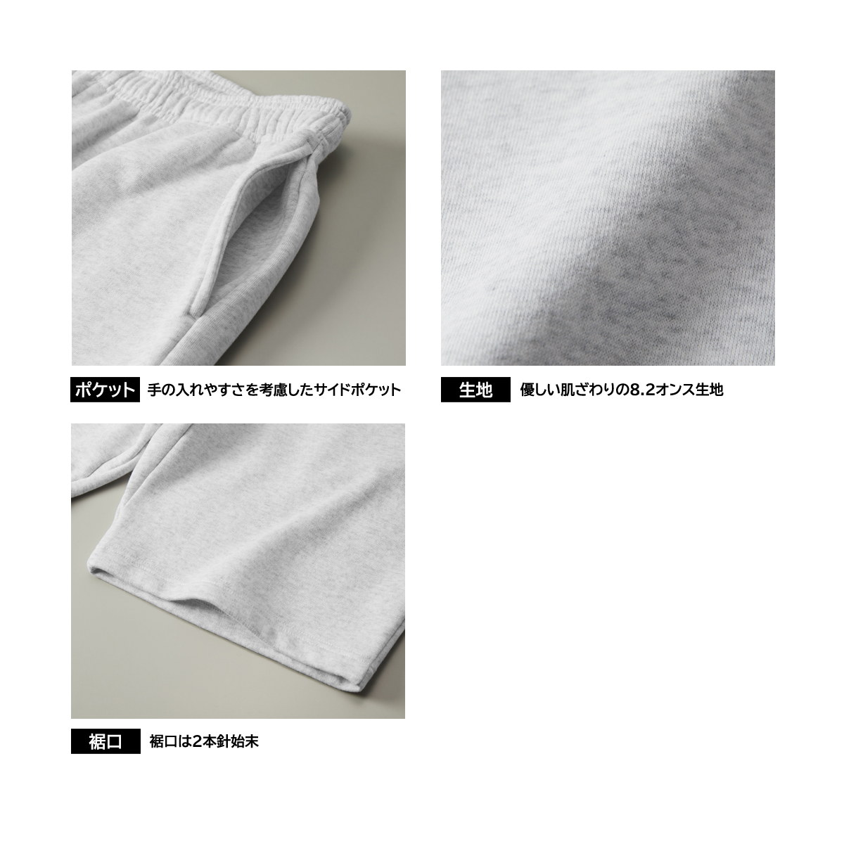 程よい厚みと優しい肌ざわりの裏パイルのスエットショーツは体のラインが出ないくらいのレギュラーサイズのシルエットです。