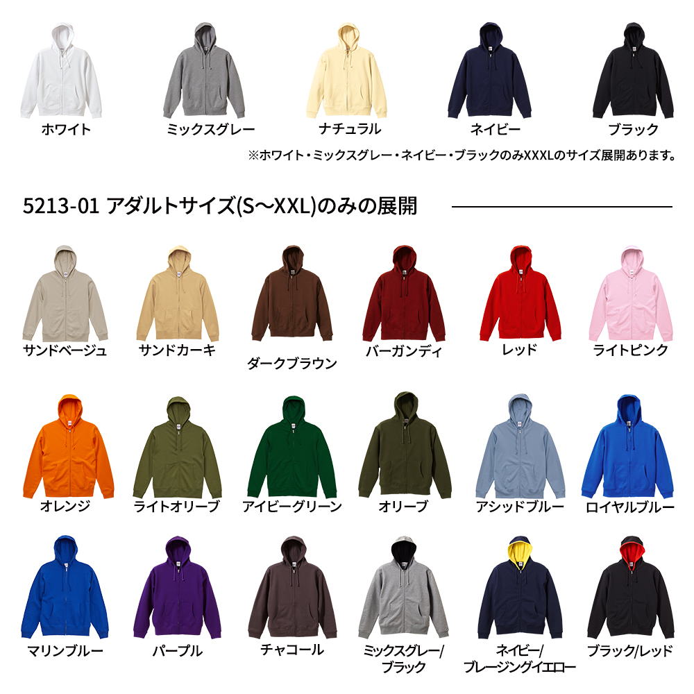 23色の豊富なカラーバリエーションと、キッズサイズもあるサイズ展開は親子でおそろいも可能なジップパーカー。チームカラーや推しカラーでオリジナルパーカーも作れます。