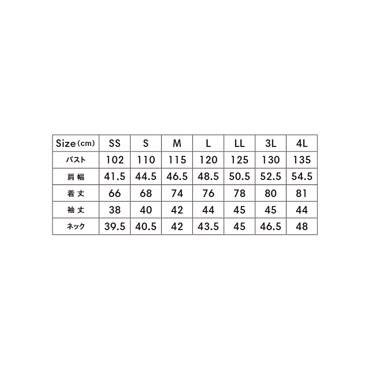 ●サイズ:SS~4L