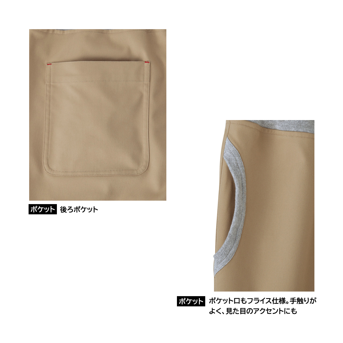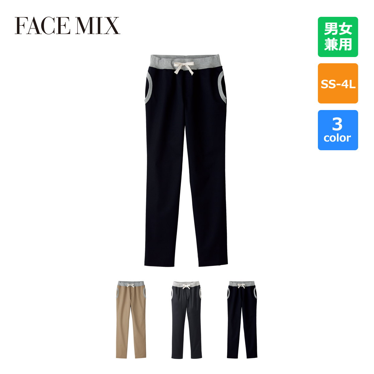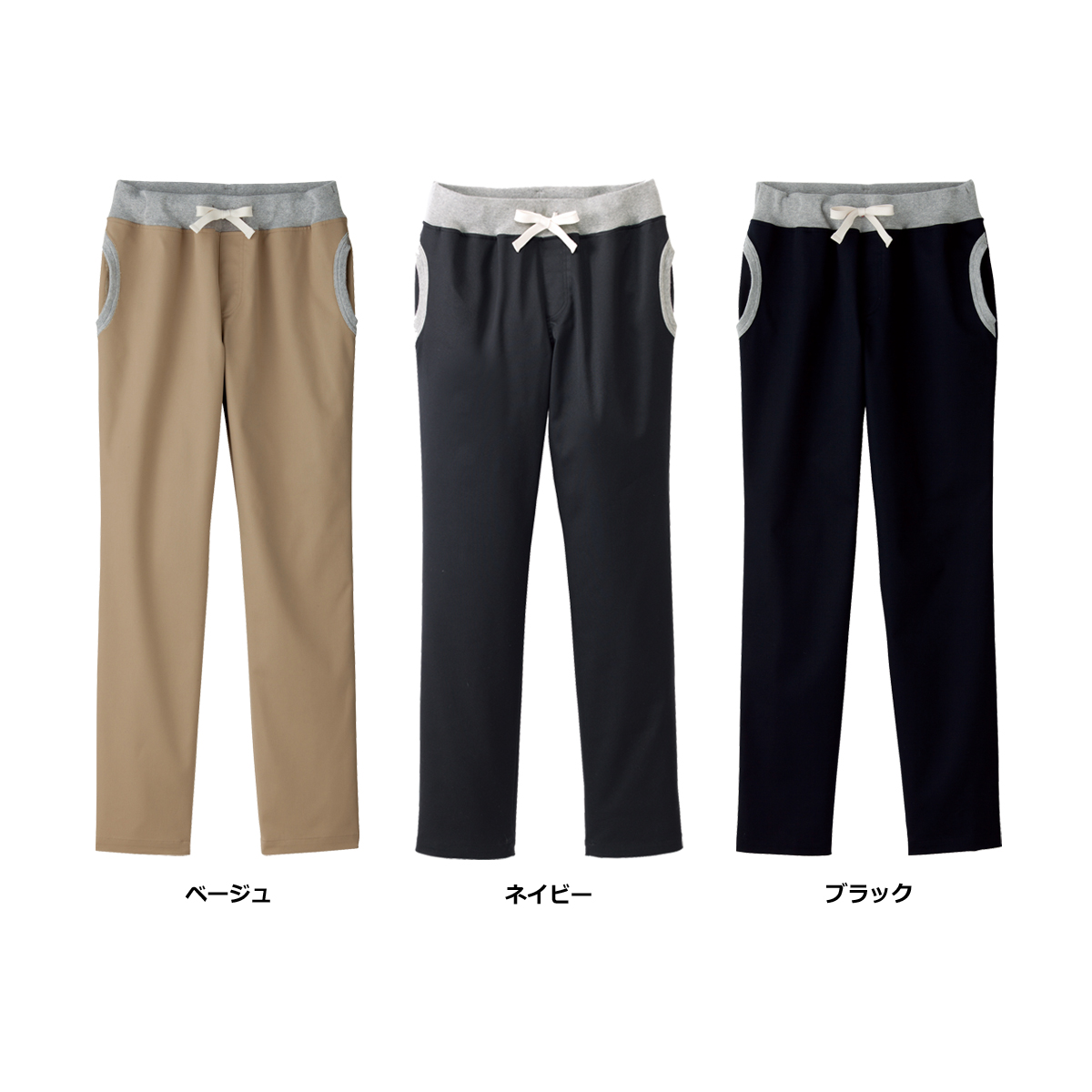 ●特徴:両脇ポケット口フライス使い・ウエストフライス仕様・平ゴム入りウエスト紐入り・ウエスト調節可能