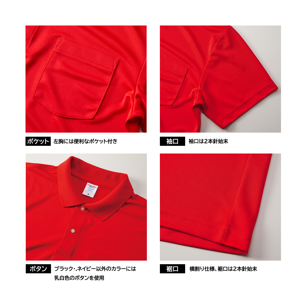 特徴:襟はリブ仕様、吸水速乾、紫外線遮蔽