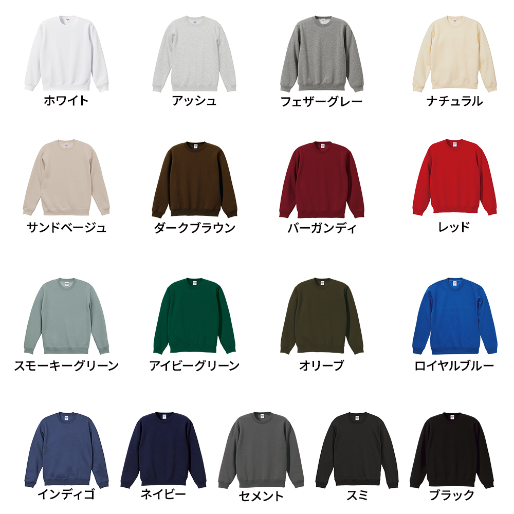 このクルーネックスウェットに刺繡やプリント加工をしてオリジナルスウェット(オリジナルトレーナー)を作成しませんか。