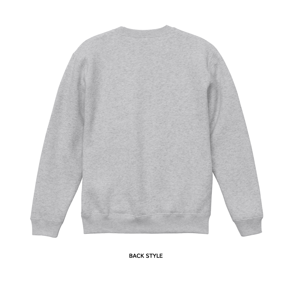 10.0オンス T/C クルーネック スウェット使用。表面には胸元にオリジナルロゴ刺繍、一部前面・背面にはDTFプリント加工を行っています。