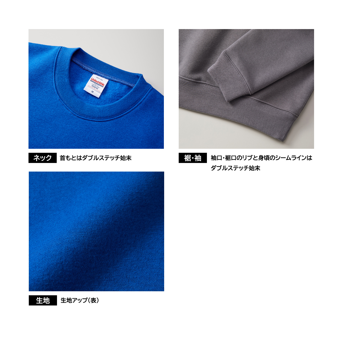 ふわふわの裏起毛があったかい10.0オンス T/C クルーネック スウェット。