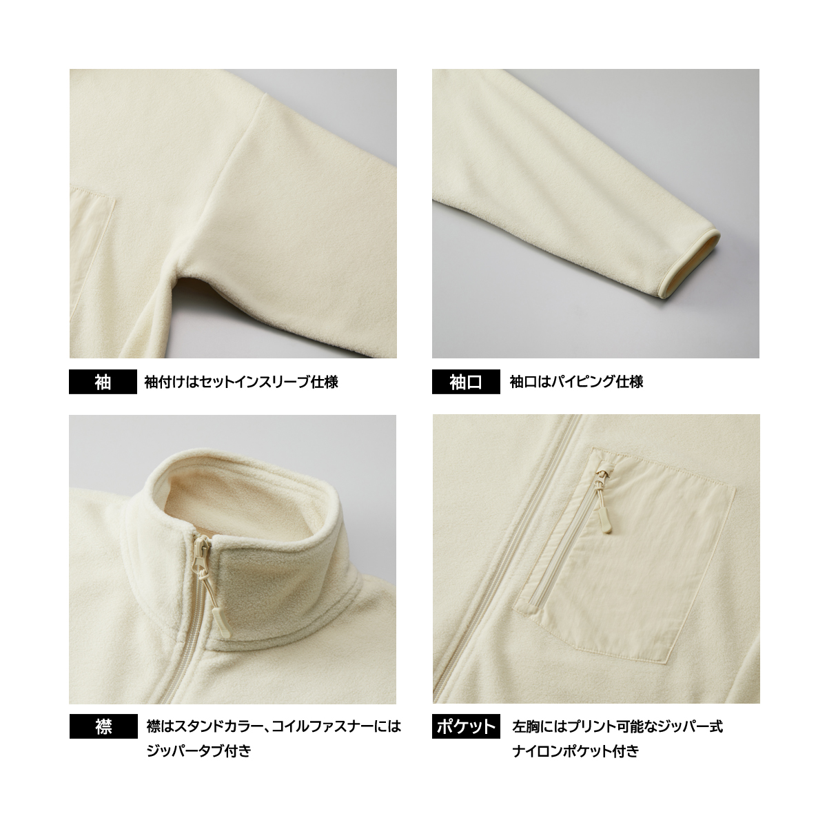 このフリースフルジップジャケットに刺繍加工をして、オリジナルスタンドジャケットを作成しませんか。
