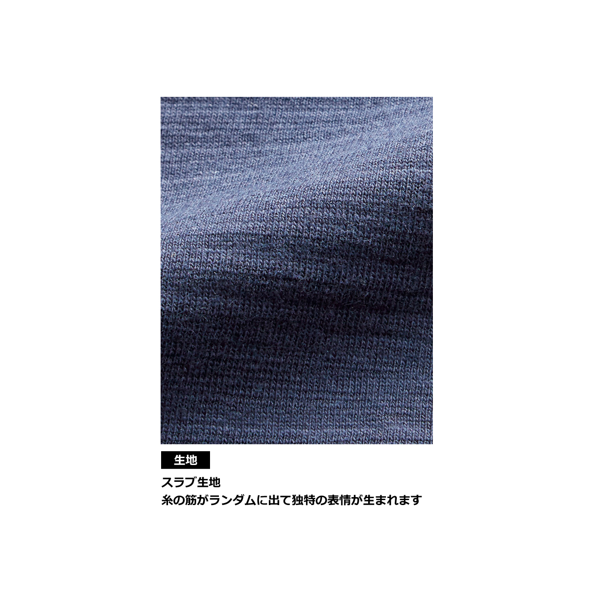 綿100%のスラブ生地は、独特の凹凸感があり、さりげない個性を演出します。