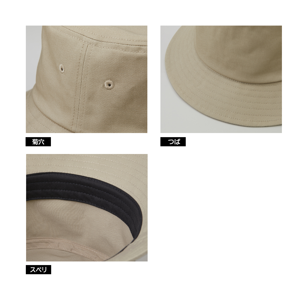 程よいハリと光沢が特徴のコットンツイルバケットハット。