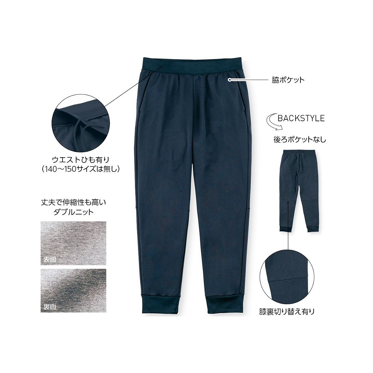 膝裏切り替えでより動きやすく快適な着心地になっています。