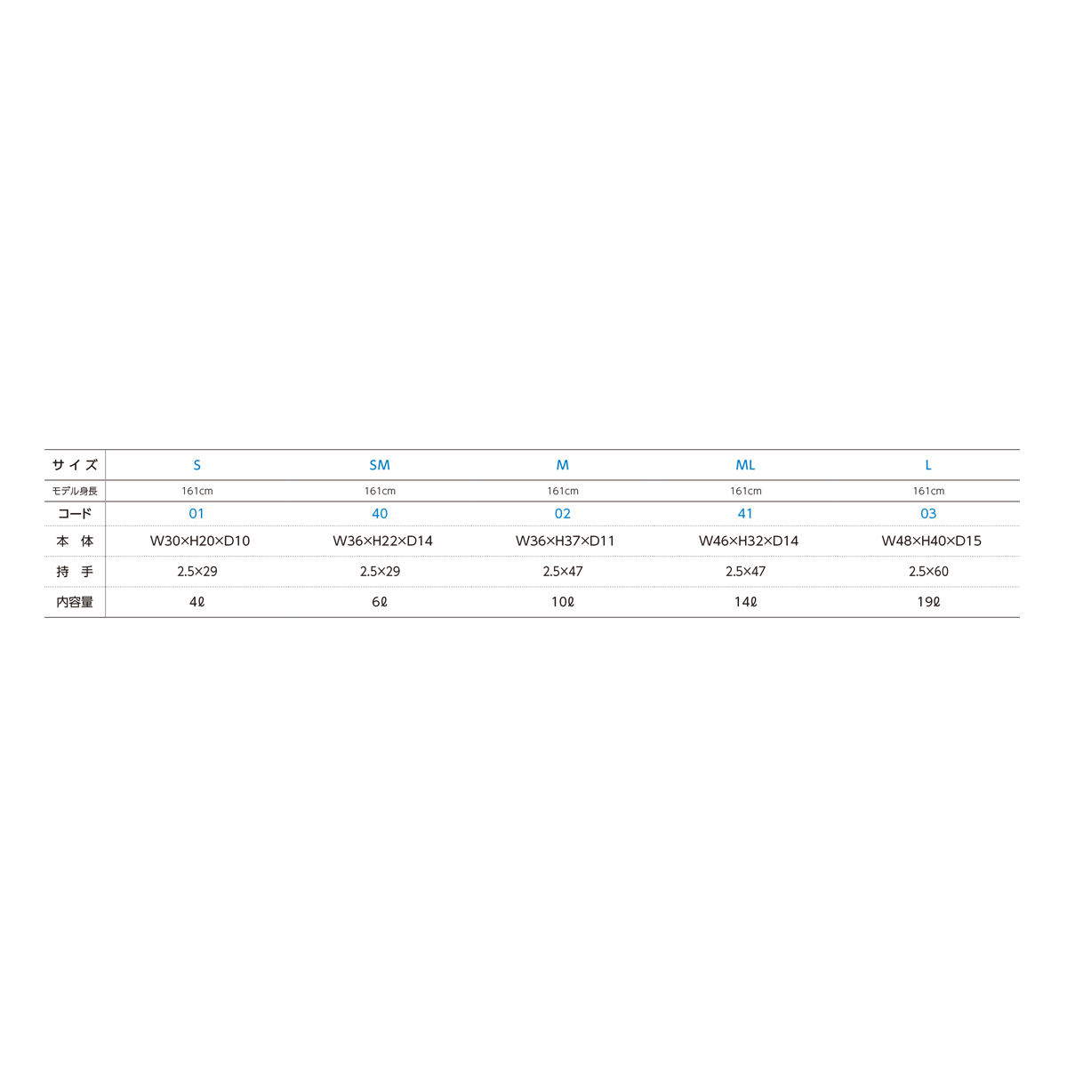 M、ML、Lサイズは通勤、通学、ショッピングなど用途に合わせて使い分けができます。