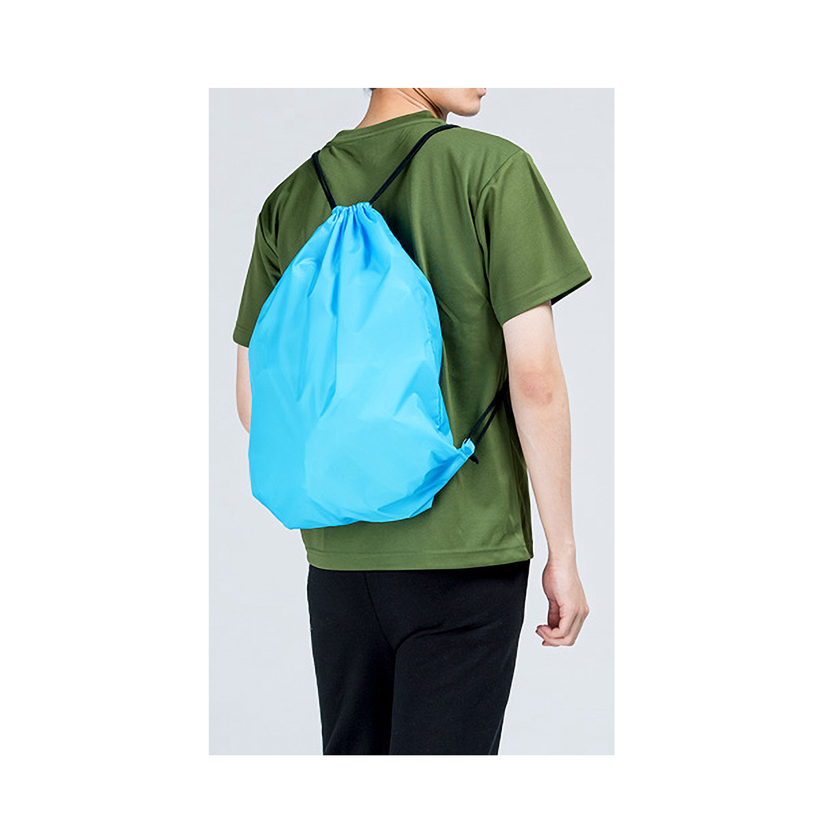 ナップサックタイプのポリエステル素材のランドリーバッグ。