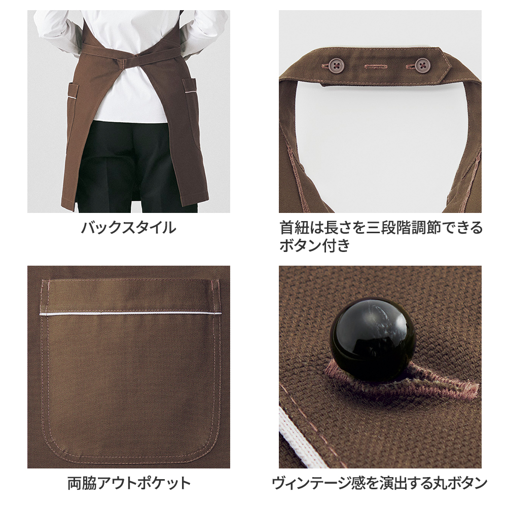 ヨーロッパのレストランをイメージして作られたカジュアルな胸当てエプロンです。
