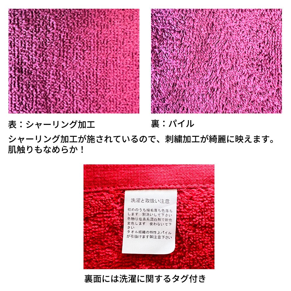 シャーリング加工されたタオルは、通常のタオルよりも肌触りが滑らかで、見た目も美しく高級感があります。