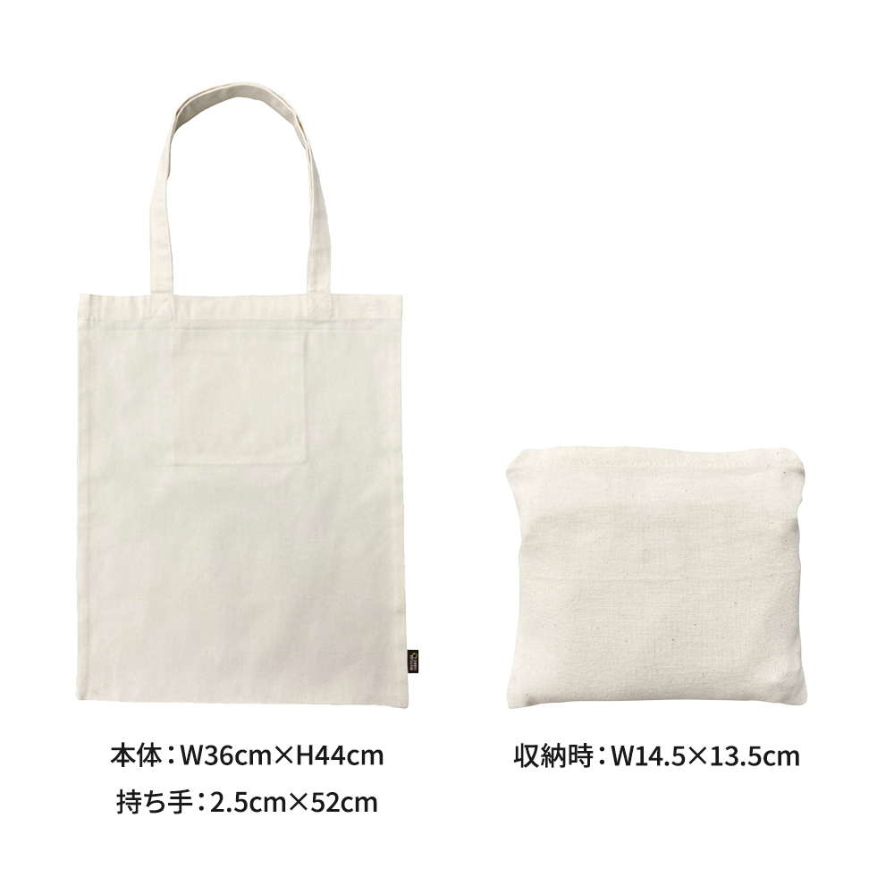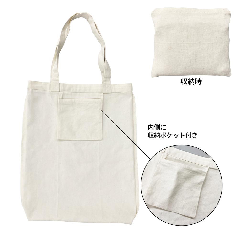 折りたためるので、バッグに入れておけば急なお買い物や荷物ができたときにさっと使えて、1つ持っていると便利なコットントートバッグなので、刺繍やプリント加工を入れて、使い勝手の良いオリジナルグッズが作成できますよ。