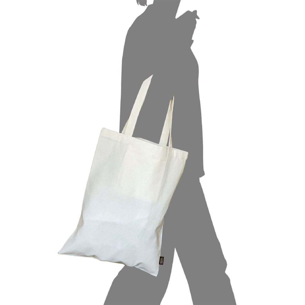 再生繊維を使用した リサイクルトートバッグ。