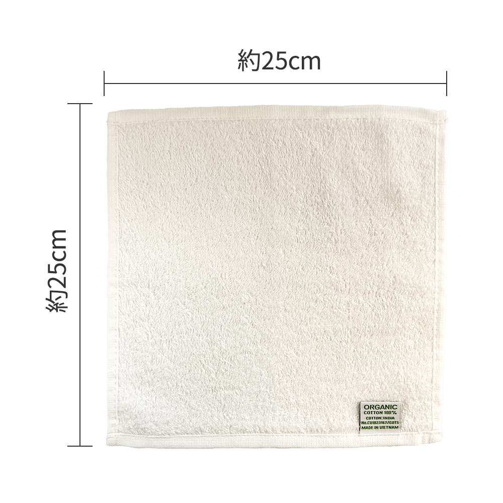 オーガニックコットン100%の自然にも人にも優しいタオルハンカチです。こちらは25cm×25cmの大判サイズ。20cm×20cmもございます。