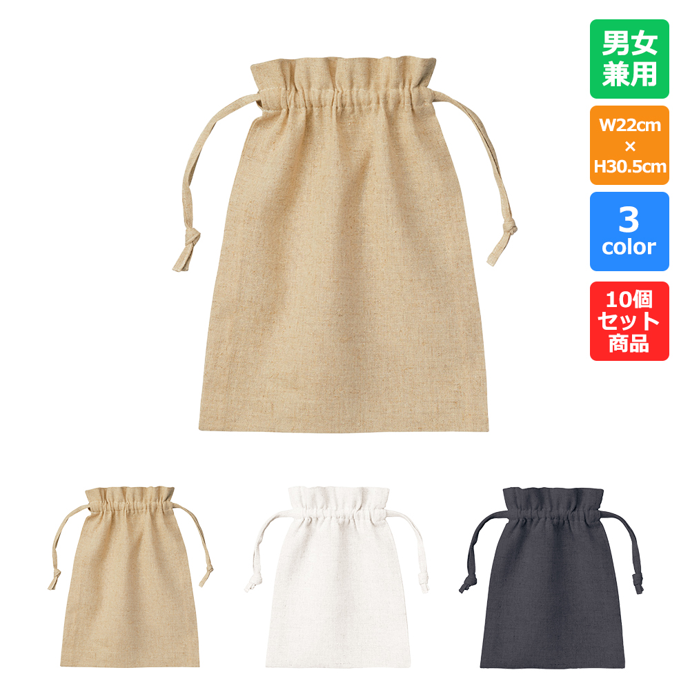 コットンリネン巾着(M)【10個セット】【TR-0986_10】