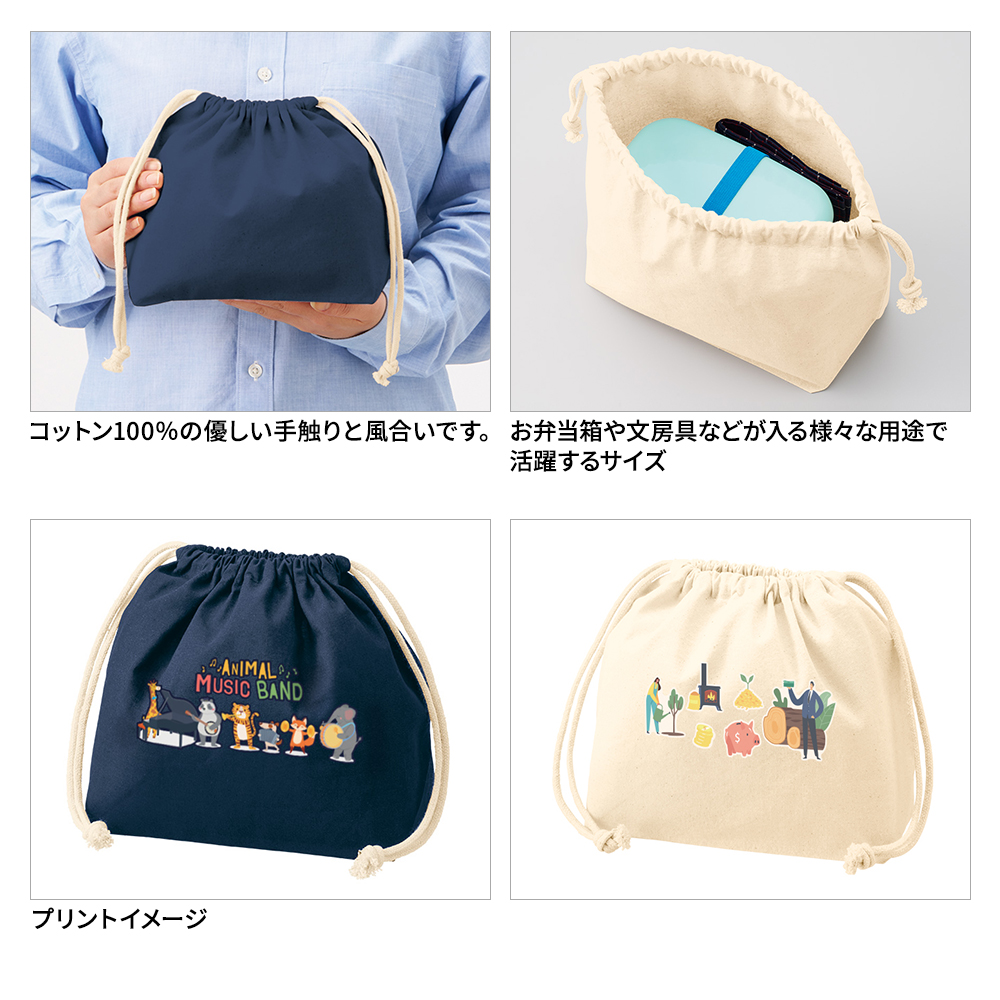刺繍やプリントを入れてオリジナル巾着を作成しませんか。