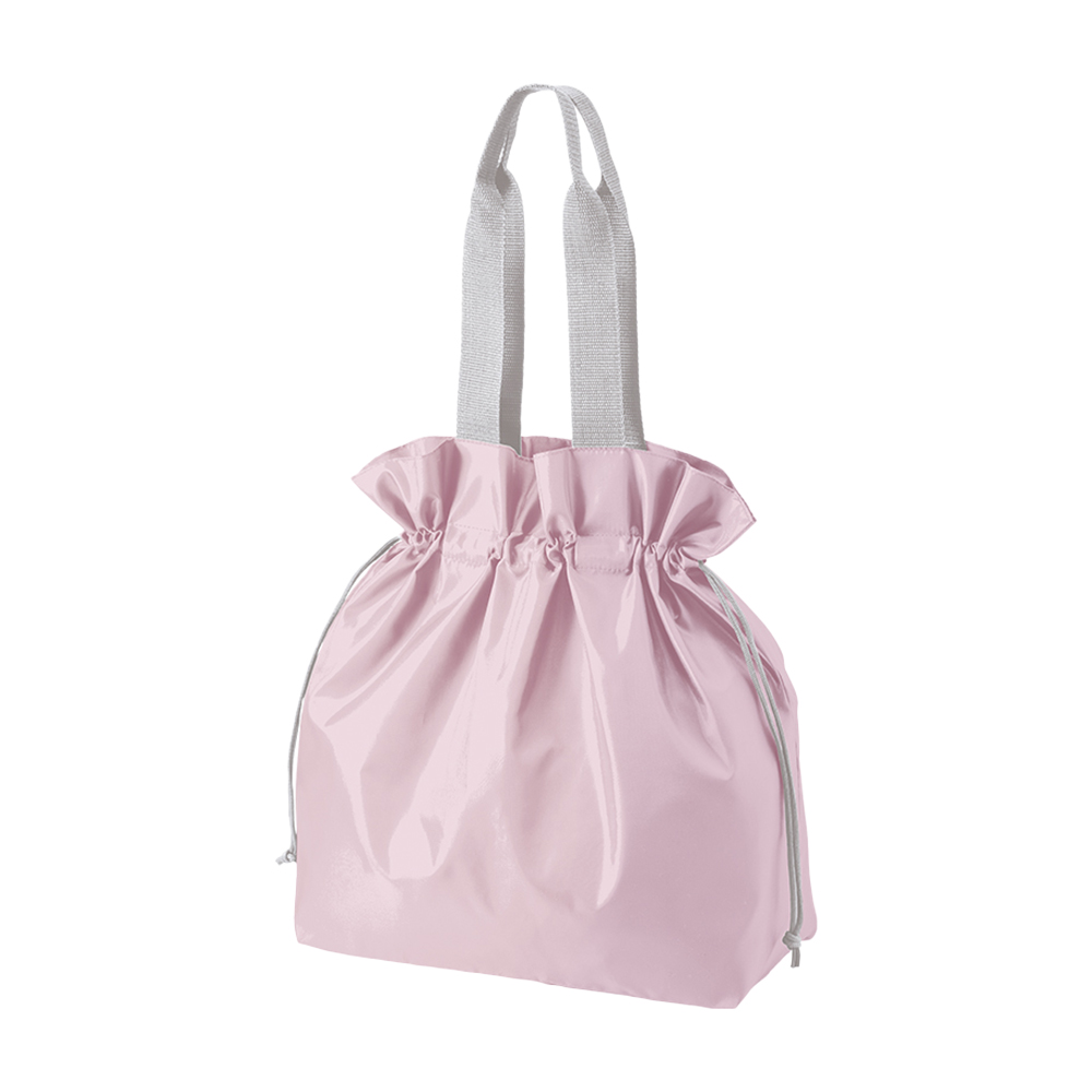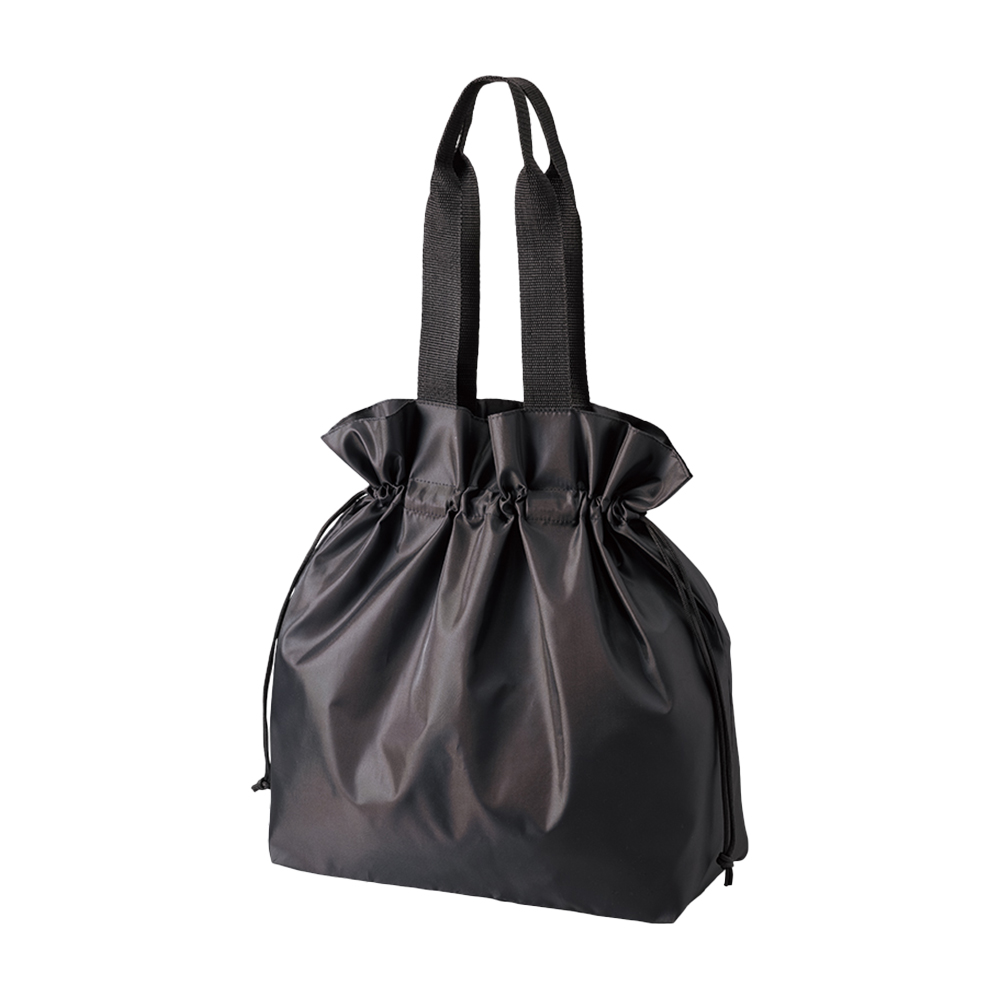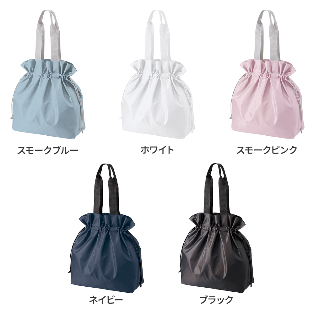 口元のフリルがとってもかわいい巾着タイプのポリエステルトートバッグ。