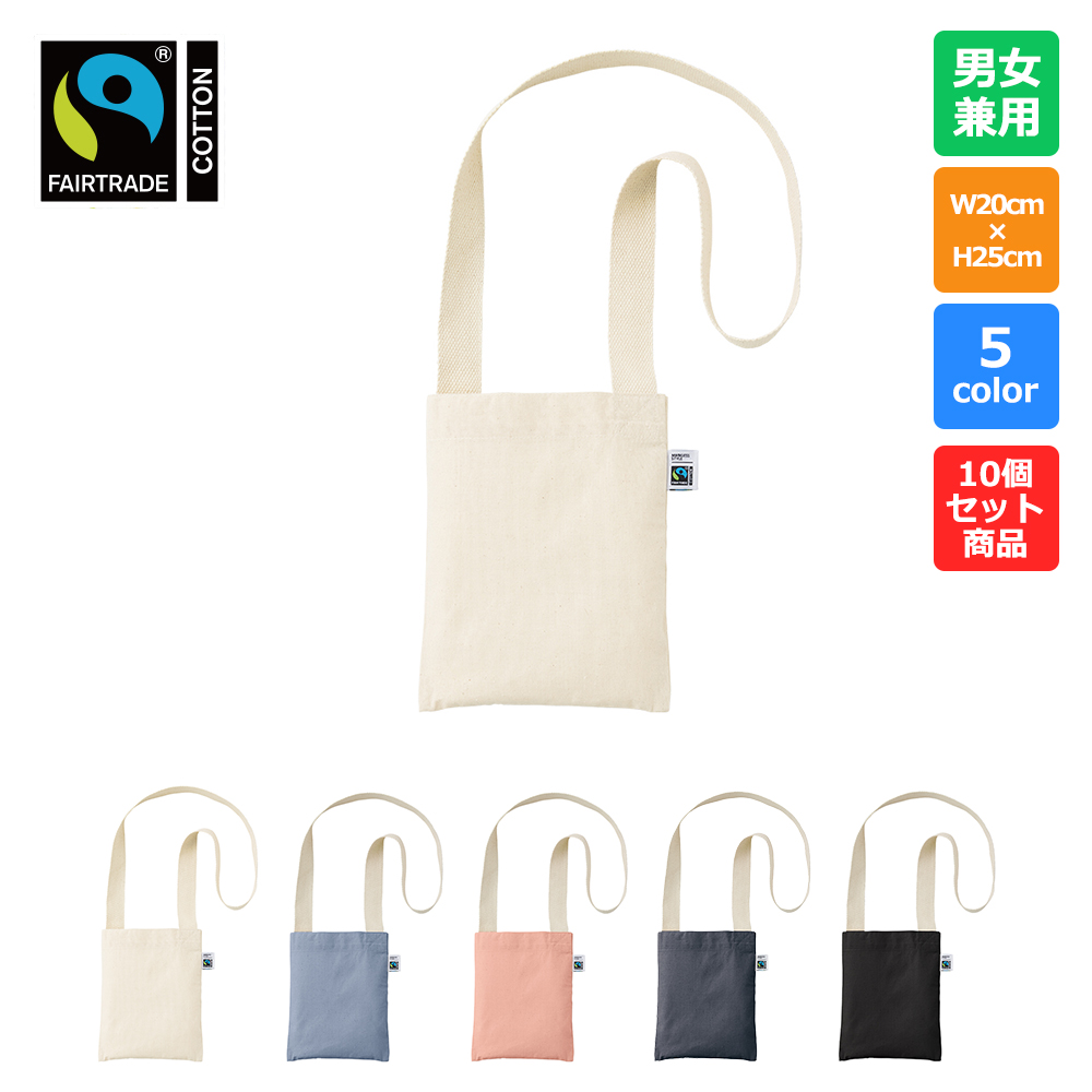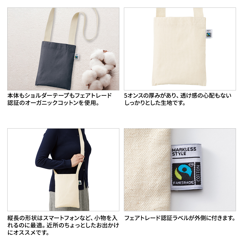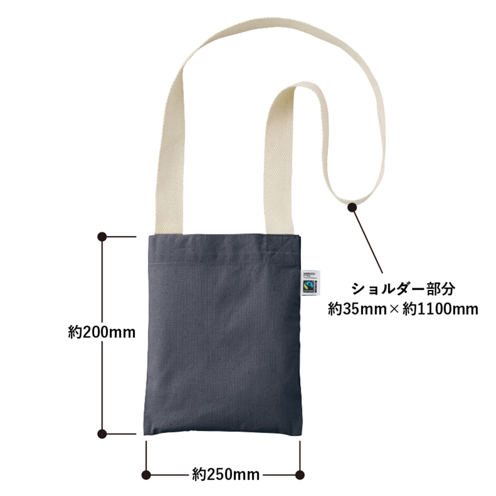 フェアトレードのオーガニックコットンを100%使用したサコッシュです。