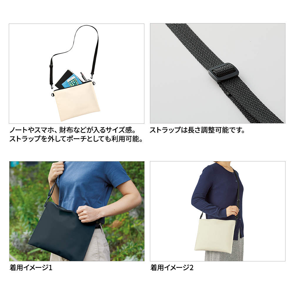 コンパクトでシンプルなデザイン。スマホや財布などが入るサイズ感です。