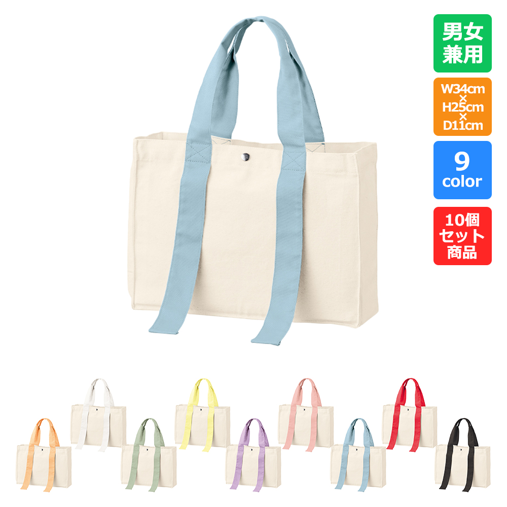 キャンバスカラーハンドルスクエアトート【10個セット】【TR-1383_10】