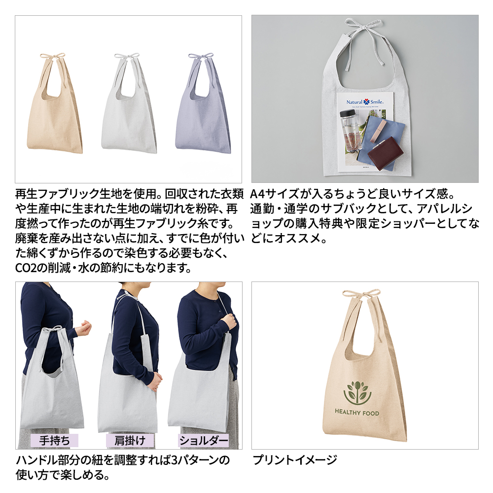 再生ファブリックを使用したエコで環境に優しいマルシェバッグです。
