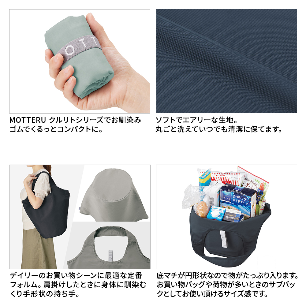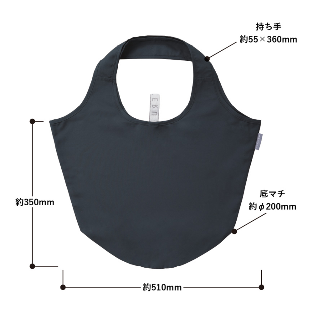 ゴムバンドでくるりとコンパクトにまとめて持ち運びのできるエコバッグです。
