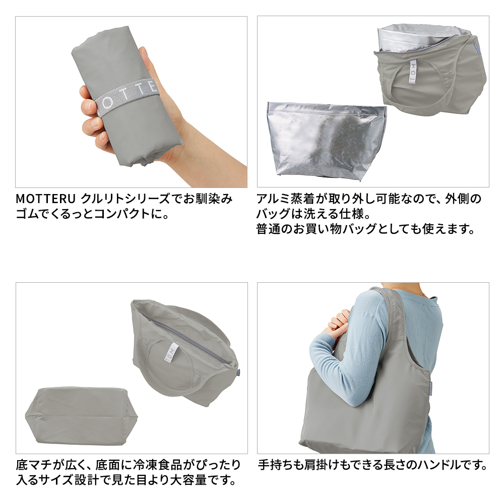 アルミ蒸着はつけ外し可能で、外側のバッグが洗える仕様です。