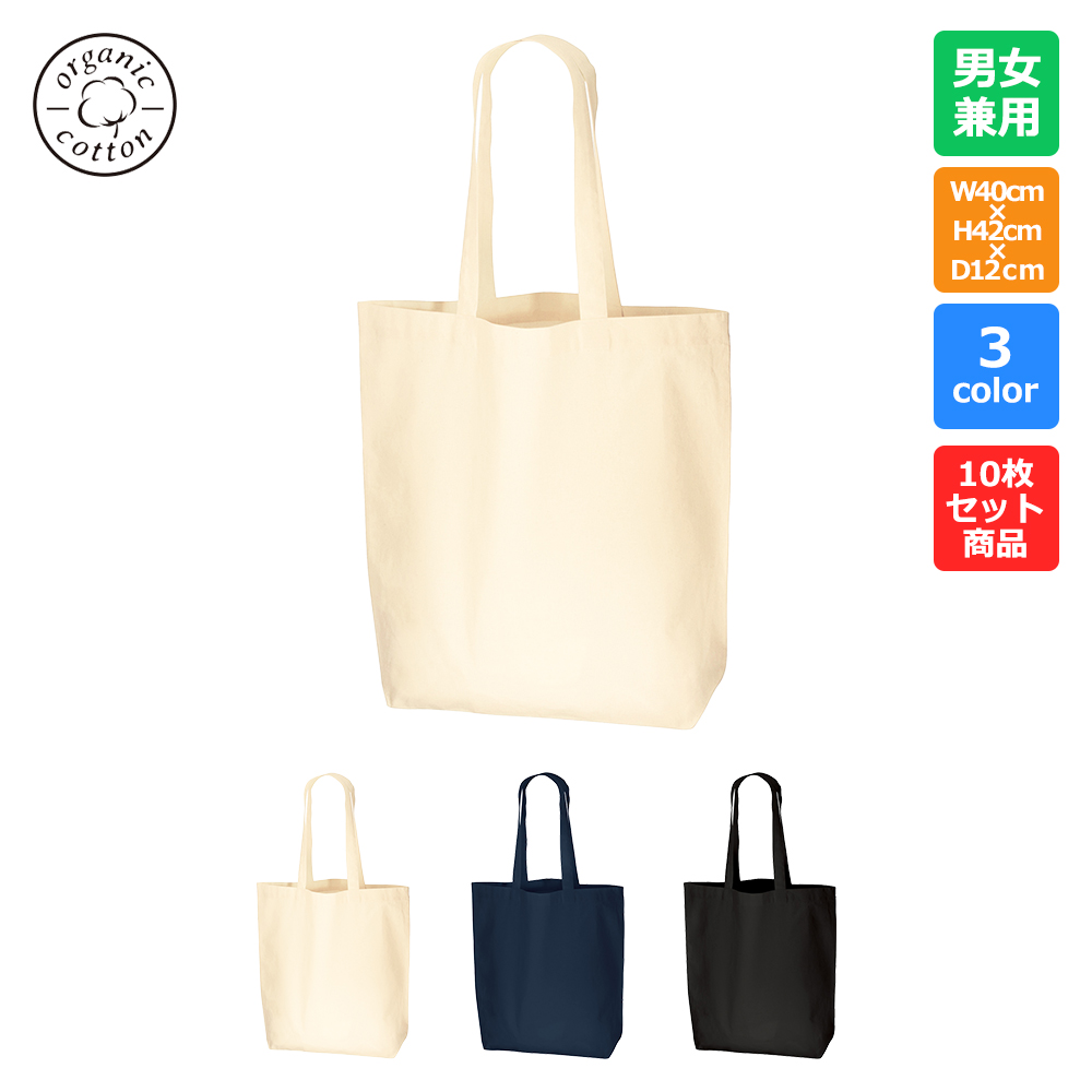 オーガニック厚手コットンバッグ(L)【10個セット】【TR-1297_10】