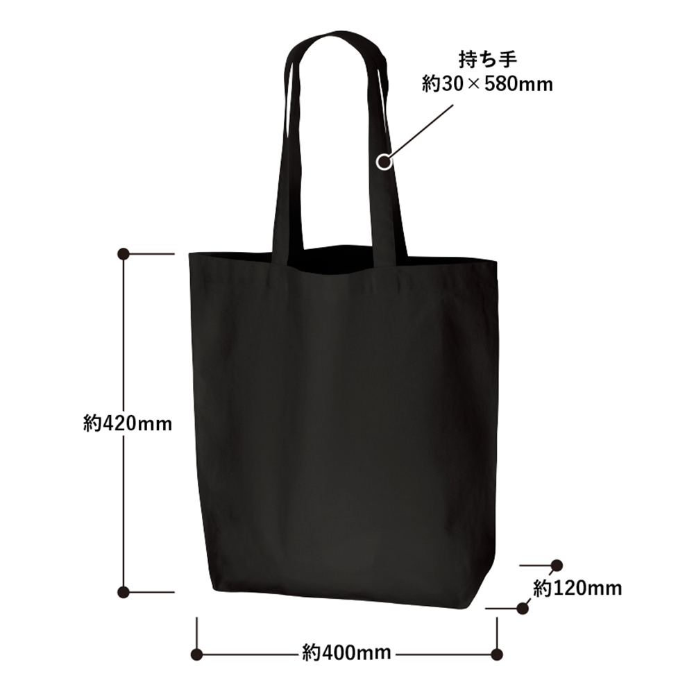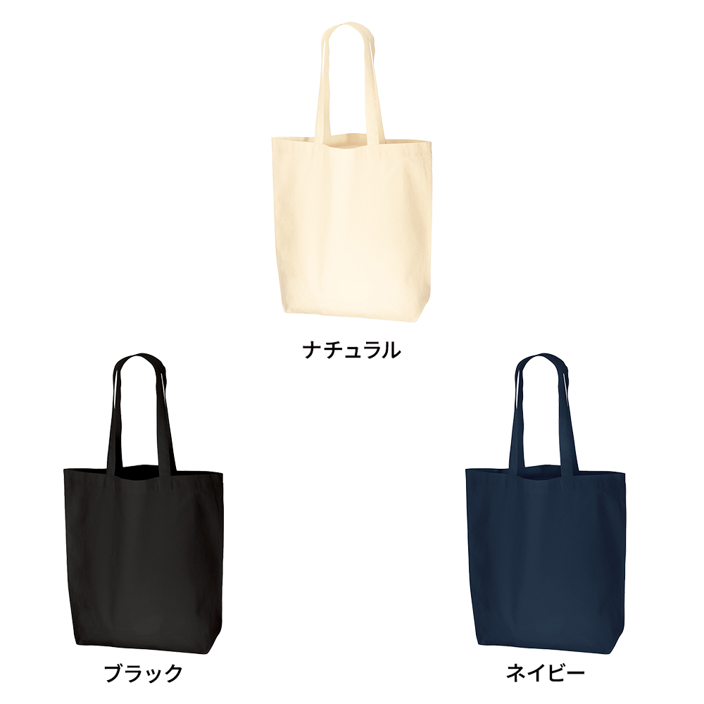 オーガニックコットンを100%使用した5ozの程よい厚みのA4サイズがすっぽり入る船底タイプのマチ付きのトートバッグです。