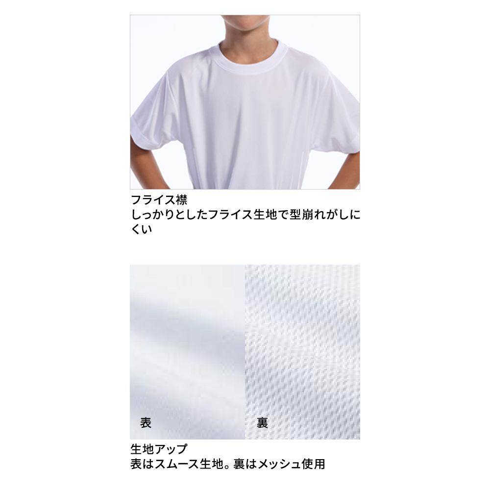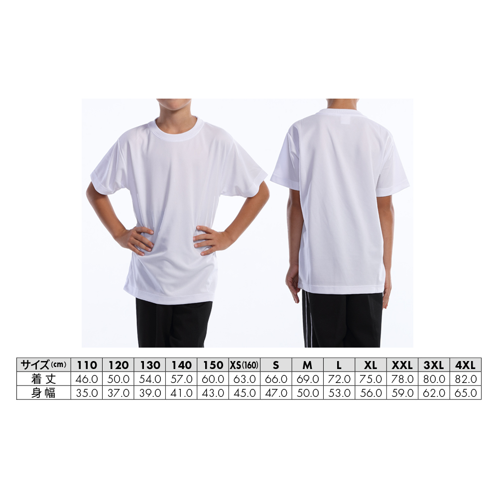 キッズサイズから4XLまで様々な体型の方に着用いただけるドライTシャツです。