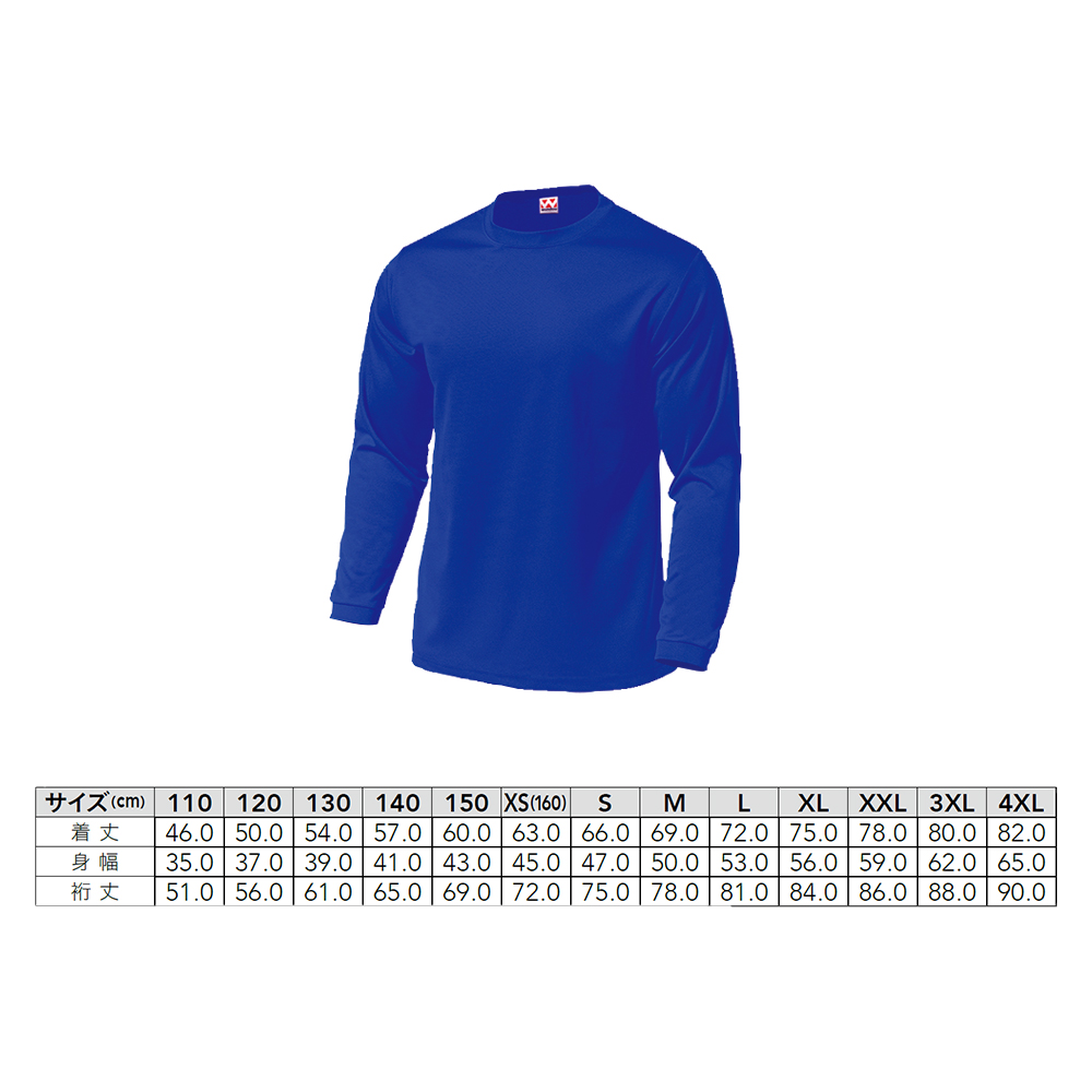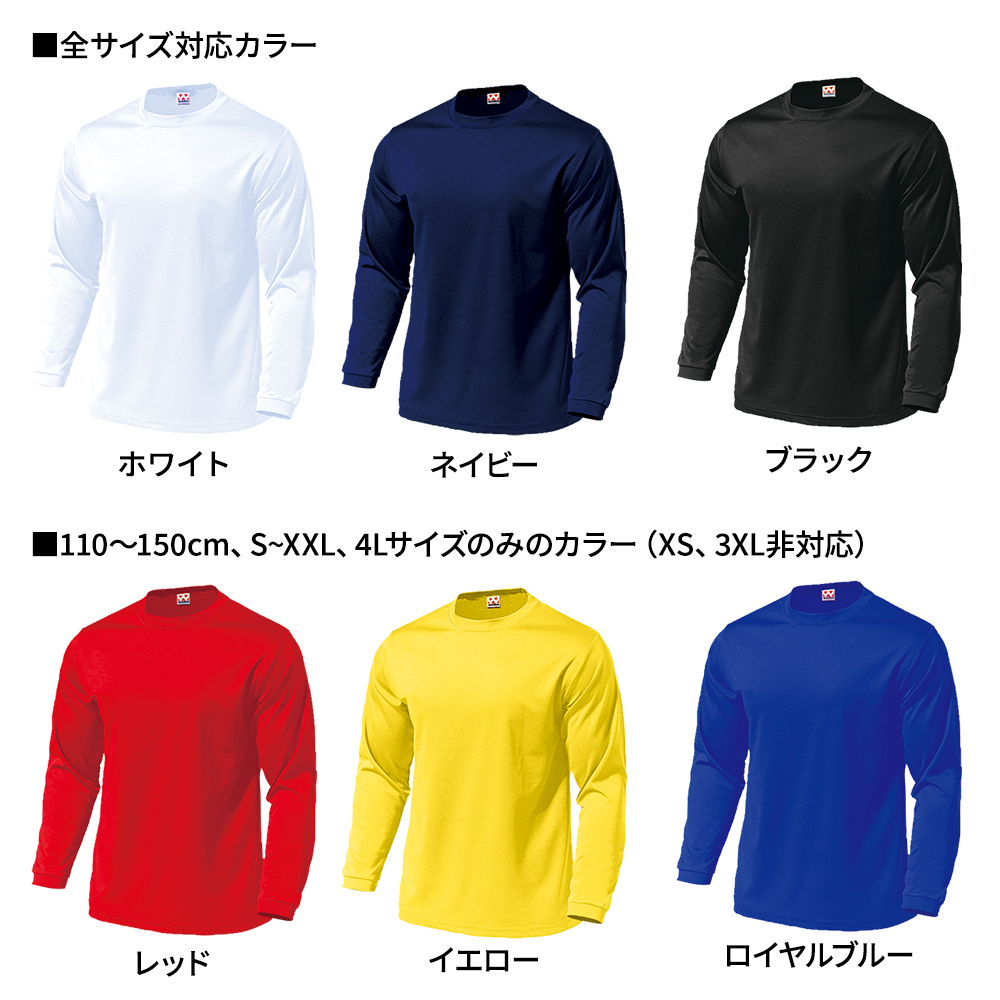 キッズサイズから4XLまで様々な体型の方に着用いただける長袖ドライTシャツです。
