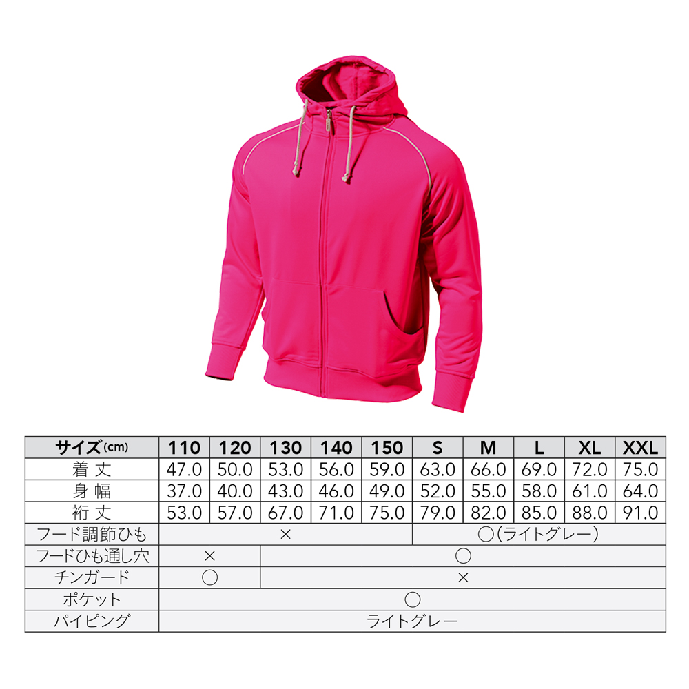 ■フード調節紐はS~XXLのみに付きます。フード紐穴は130~150cmにもありますが、紐は付きません。110と120cmはフード紐穴もフード紐もありません。