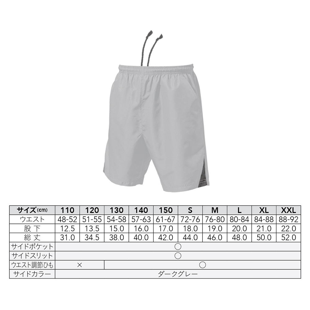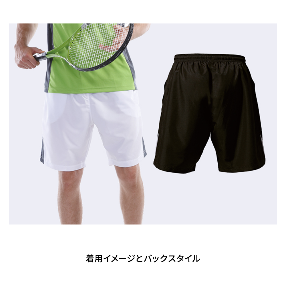 ポリエステル100%、ひし形織の凸凹感のある布帛生地を使用。丈夫でしっかり感のあるテニスパンツです。キッズサイズ110~のご用意で、XXLまであり、様々な体型の方にご着用いただけます。