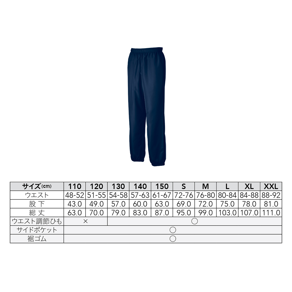■機能:はっ水、サイドポケットあり、裾ゴムあり、ウエスト調節ひも(110・120cmはなし)