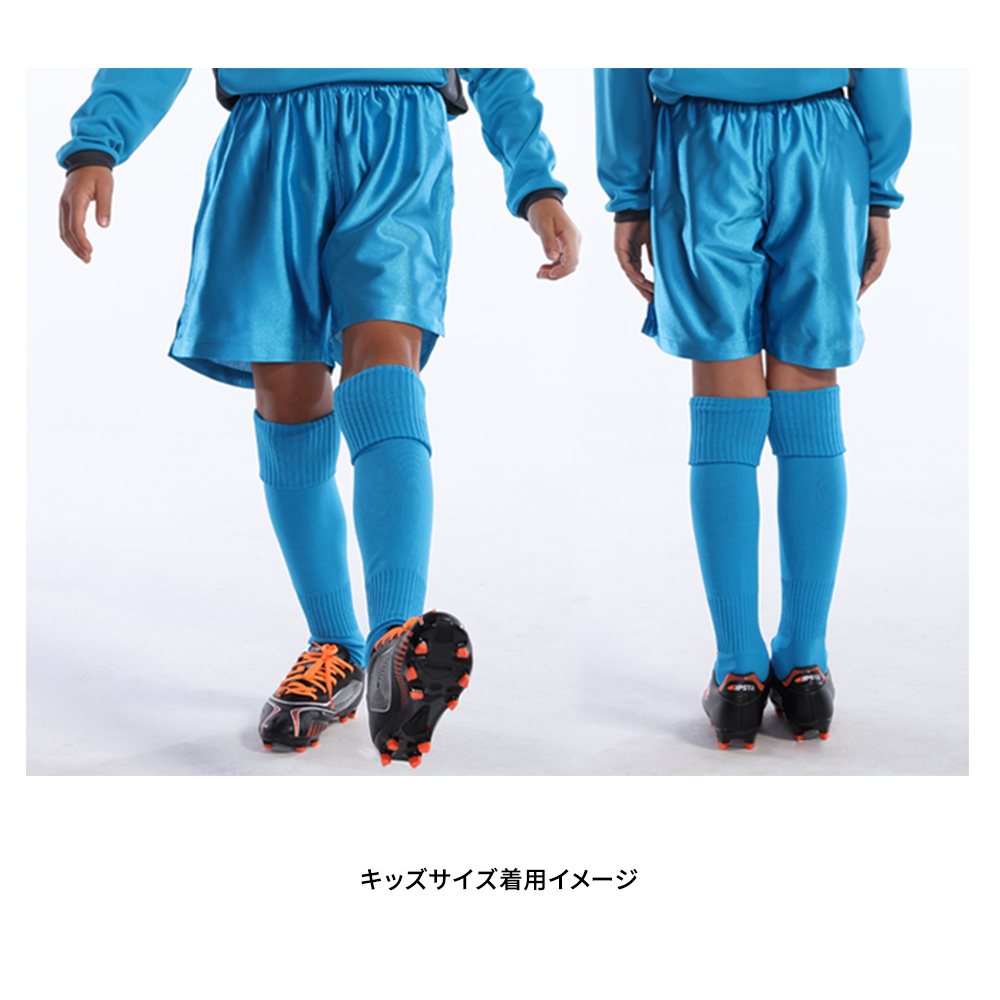 セットアップで着用できるのベーシックサッカーシャツ(P1910)、ベーシックロングスリーブサッカーシャツ(P1930)と同カラーのサッカーソックス(滑り止めありP11、滑り止めなしP10)のご用意がありますので、合わせてプリントや刺繍をいれるのがおすすめです。