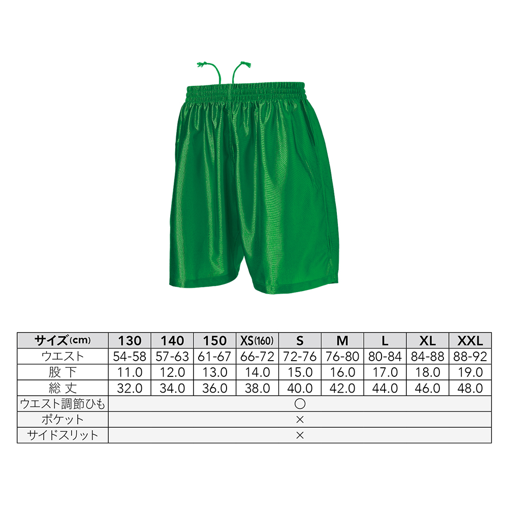 ポリエステル100%のトリコット生地を使用した、光沢感がきれいなハーフパンツです。