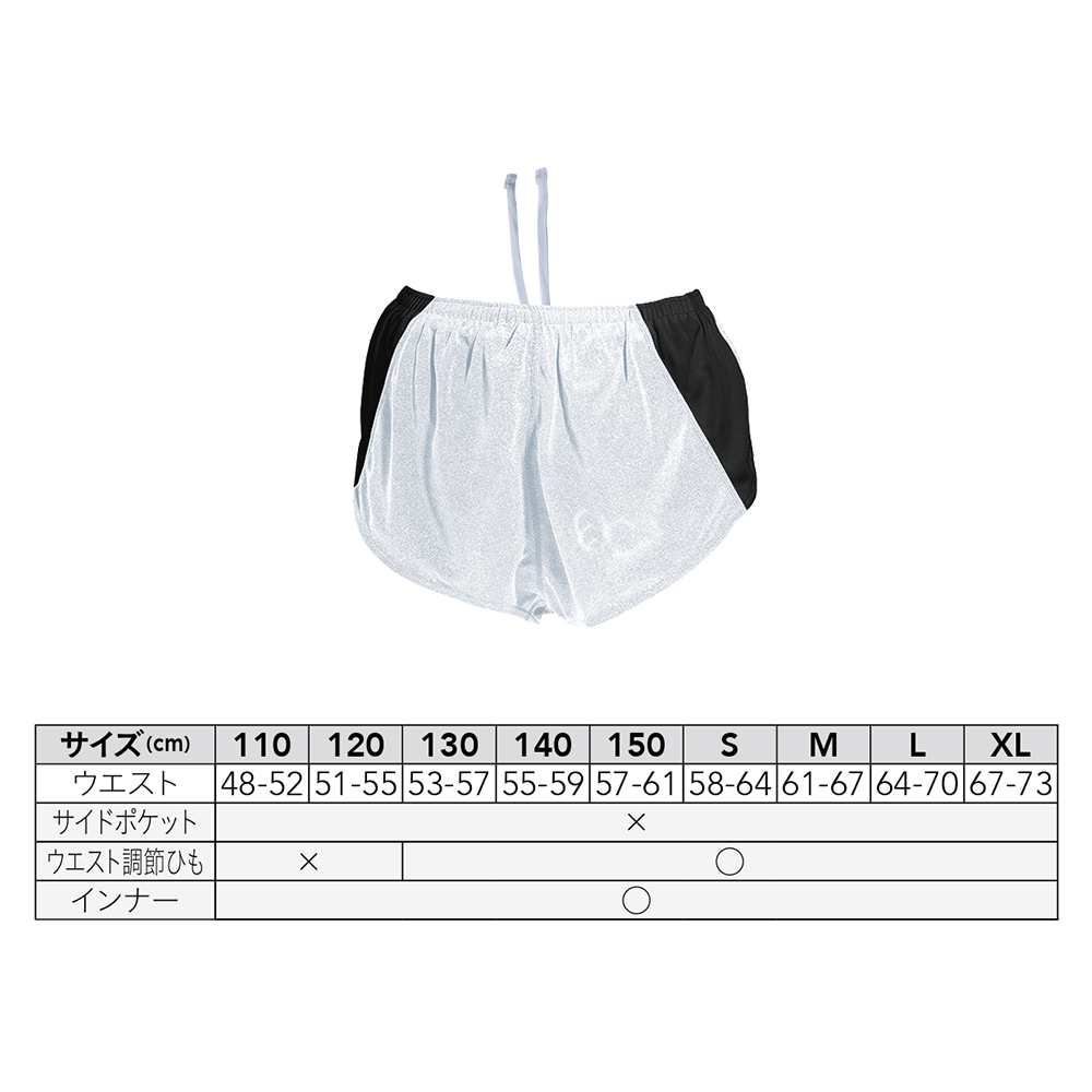 ■機能:吸汗速乾、130cm~XLのみウエスト調整紐付き、インナー付き