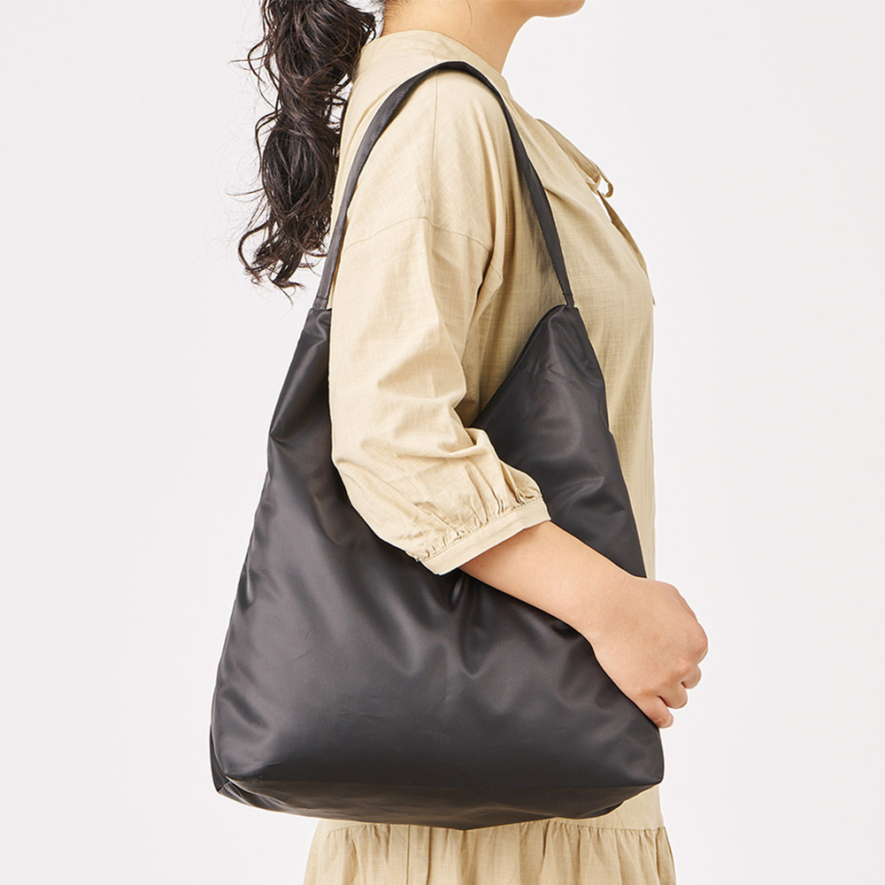 ポリエステル生地の裏面にアルミコーティングをした1枚仕立ての保冷バッグなので、ごわつかず軽くてコンパクト!日々のお買い物やサブバッグなど持ち運びにも便利な仕様です。