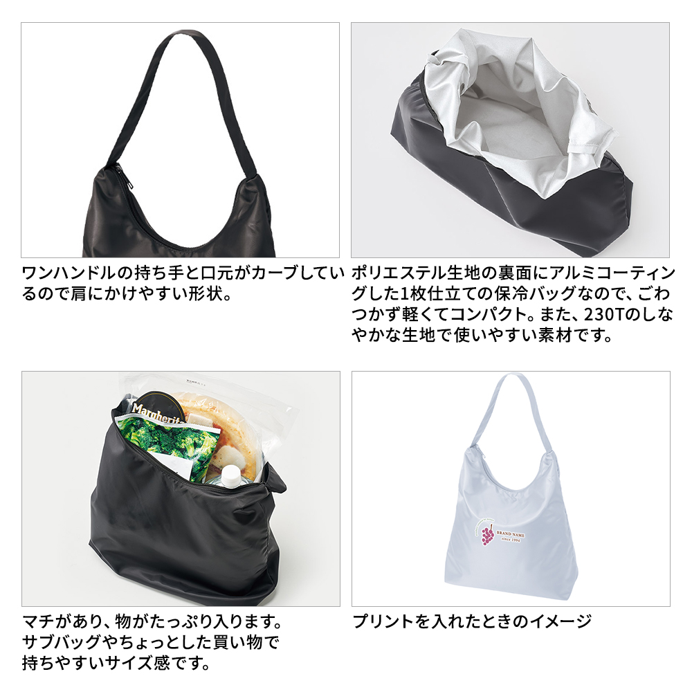ワンハンドルで口元がカーブしているため肩にかけやすい保冷トートバッグです。