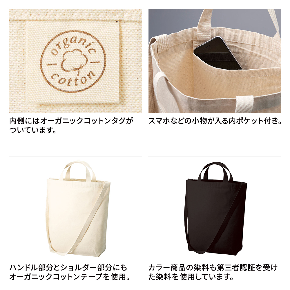 オーガニックコットンを100%使用した、ショルダーバッグとしても手持ちトートバッグとしても使える2wayタイプのバッグです。