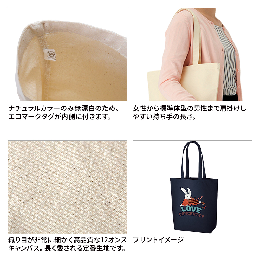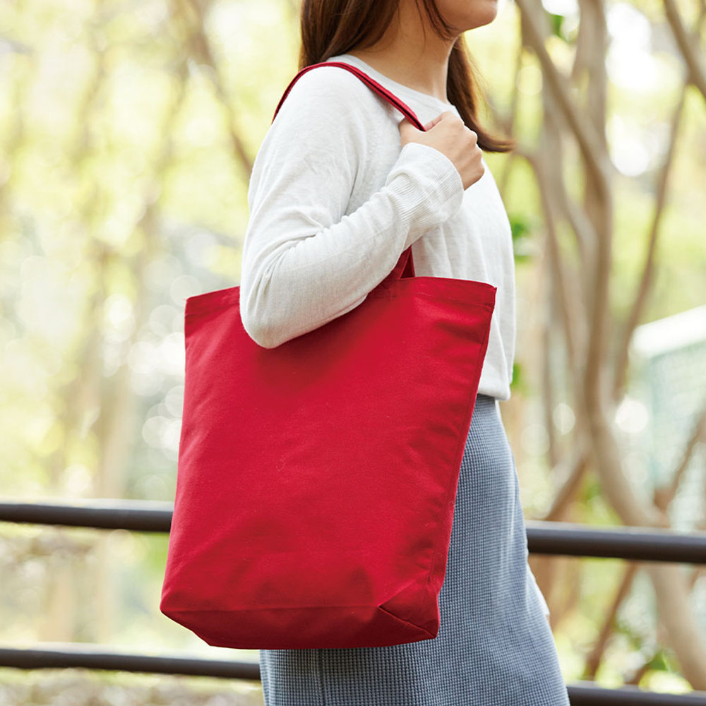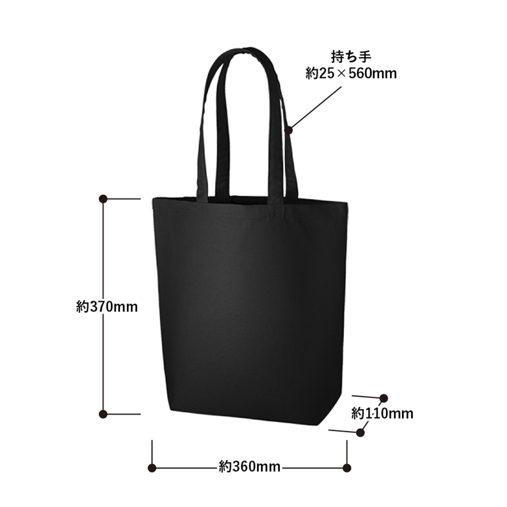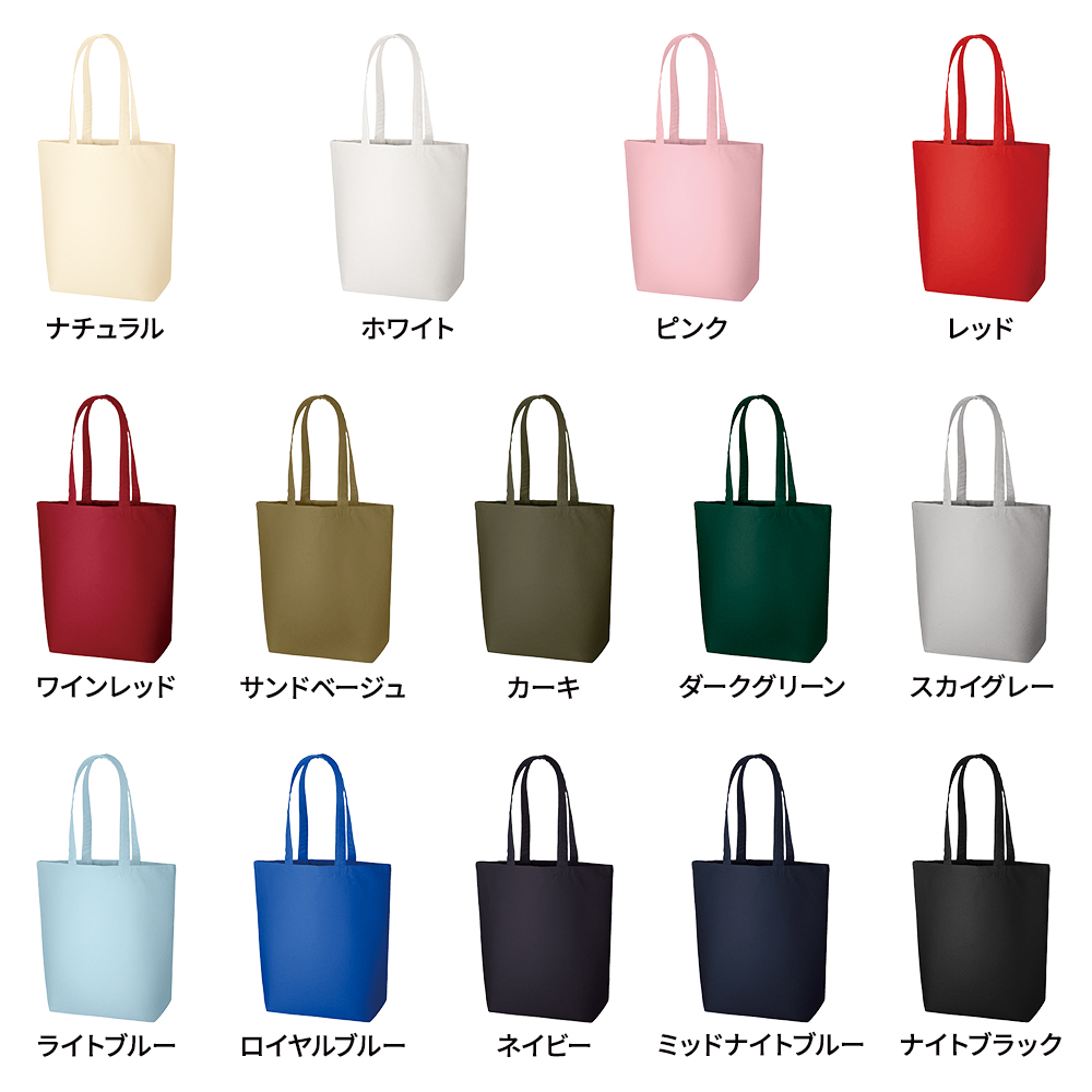 12オンスのしっかりとした厚みで丈夫なキャンバス生地のトートバッグ。