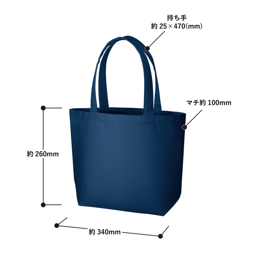12オンスのしっかりとした厚みで丈夫なキャンバス生地のトートバッグ。