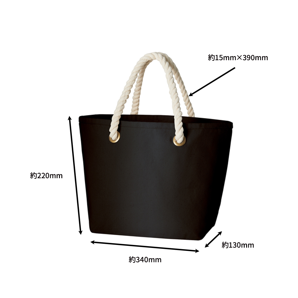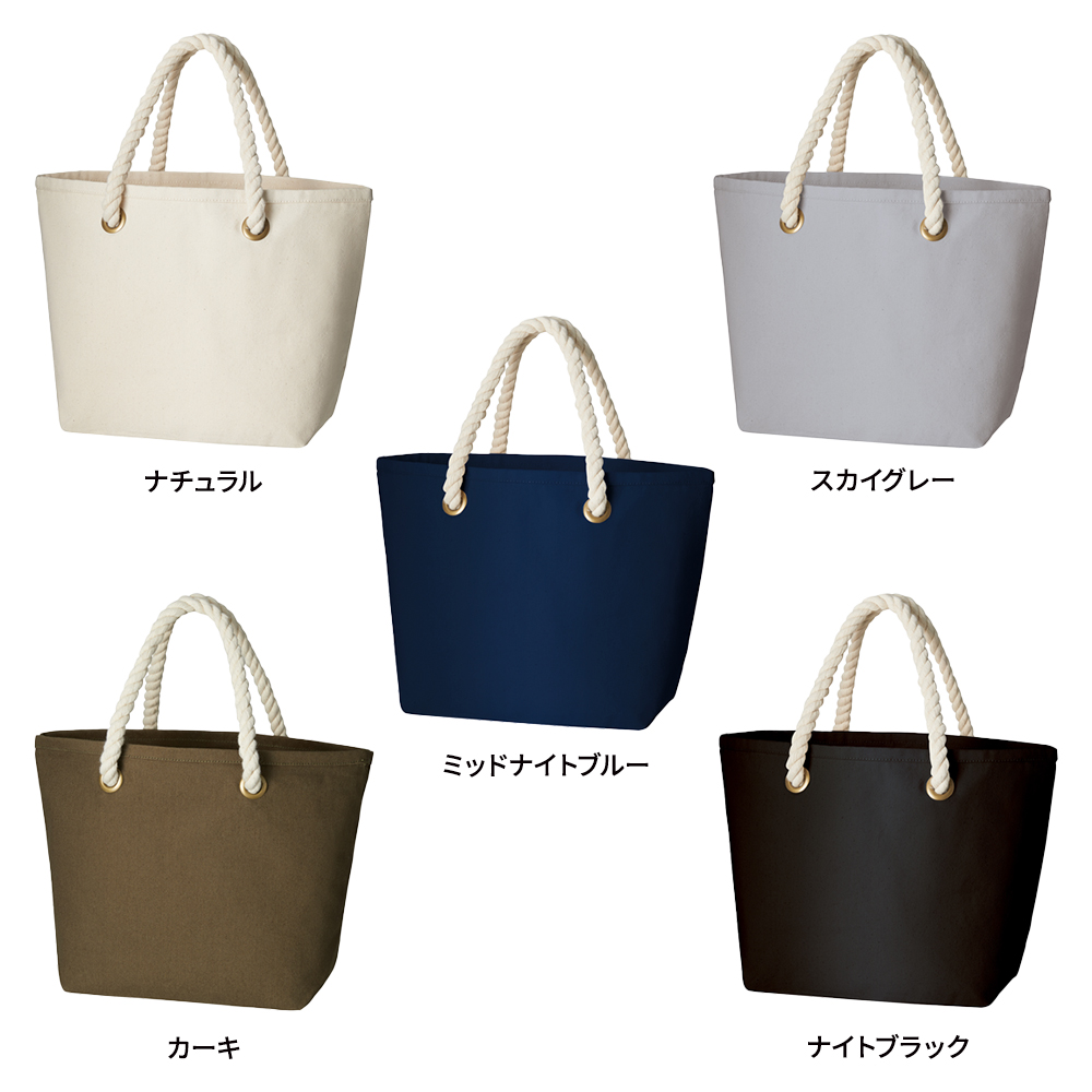 太めのロープハンドルがさわやかな印象のマリントート。12オンスの厚みのある丈夫なコットンキャンバス生地を使用しているため、中身が透けません。